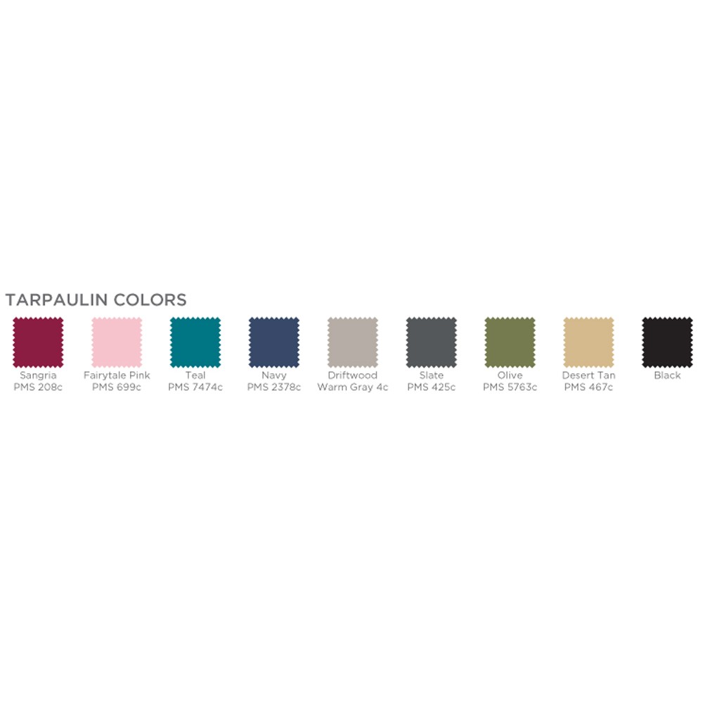 Sangria Red Waterproof Zipper (PMS 208c), Blush Pink Waterproof Zipper (PMS 699c), Teal Blue Waterproof Zipper (PMS 7474c), Midnight Blue Waterproof Zipper (PMS 540c), Sky Blue Waterproof Zipper (PMS 660c), Soft Gray Waterproof Zipper (Cool Gray 8c), Olive Green Waterproof Zipper (PMS 5763c), Citron Green Waterproof Zipper (PMS 381c), Crush Orange Waterproof Zipper (PMS 1575c), Harvest Tan Waterproof Zipper (PMS 465c), Black Waterproof Zipper